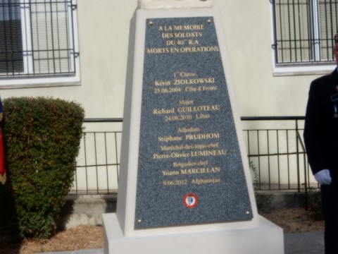 Inauguration des la stèle en mémoire des Artilleurs du 40ème RA Morts en OPEX